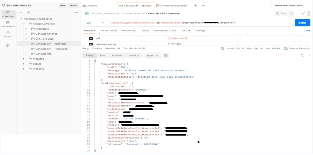 O Time TI- Bradesco Seguros irá disponibilizar as collections para testes das APIs nos ambientes DEV e HML.